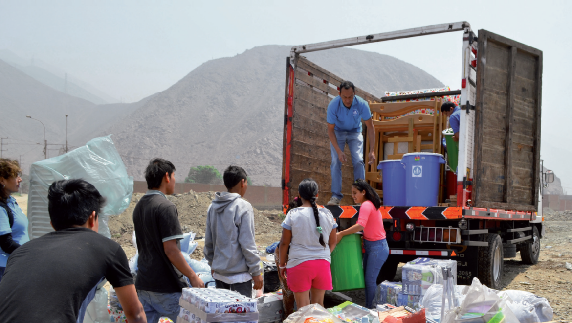 Natuurrampen zijn geen uitzondering in Latijns-Amerika en de Cariben. De vulkaanuitbarsting in Guatemala, de aardbeving in Mexico en Haiti of de overstromingen in Peru en Honduras zijn slechts enkele recente voorbeelden. NPH-partnerorganisaties komen meteen in actie door noodhulp te verlenen in allerlei vormen en maten; van onderkomen en voeding tot medische zorg. Wereldwijd werven fondsenwervende kantoren fondsen om deze hulp te bekostigen. Maatschappelijk werkster Madelin herinnert zich het eerste bezoek aan de door overstromingen getroffen stad Carapongo in Peru nog goed: ‘Eerst hebben we de plek bezocht om de situatie op te nemen en in kaart te brengen waaraan de getroffen gezinnen het meeste behoefte hadden. Vervolgens zijn we teruggekomen met eten en huishoudelijke apparaten, dekens en schoolbenodigdheden voor de kinderen. Ook gaven we voorlichting over hygiëne en gezondheid in deze omstandigheden in deze omstandigheden om de uitbraak van ziekten te voorkomen.’